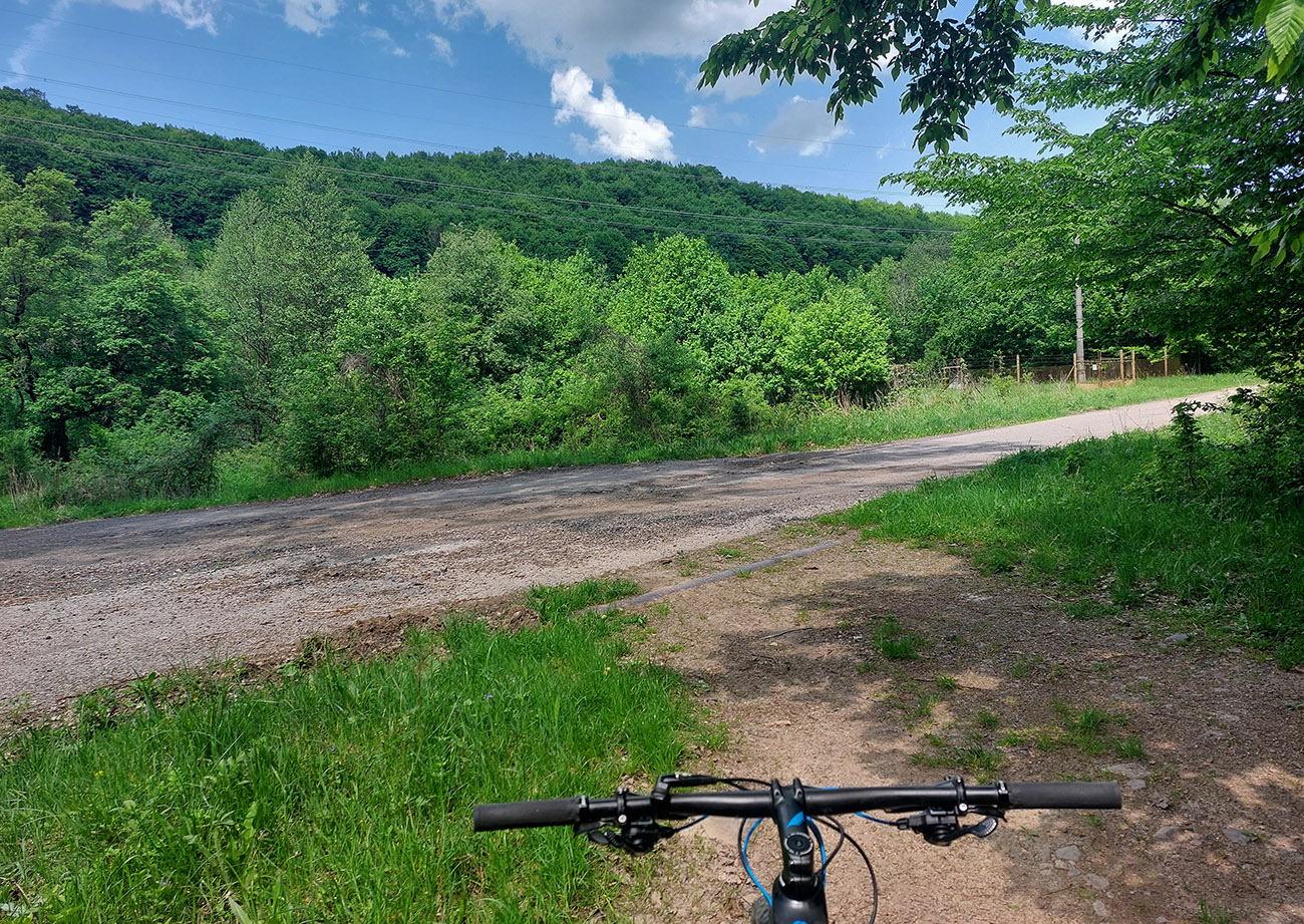 Zato začiatok bol pekný – prevažne v zjazde od vlaku cez starú časť Kremnických Baní, po dobrých cestách pomedzi vypipľané banícke chalupy, popri starých štôlňach a popri prepadlisku Šturec až na rozhľadové lúky nad kremnickou kalváriou.