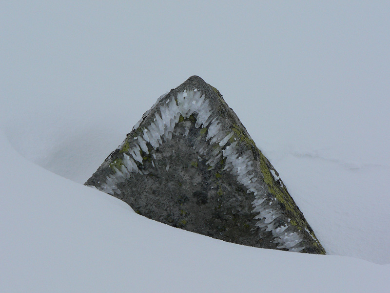 Skúsil som aj výlet do malých Závratov, ale to bolo ako ponor do mlieka. Len sem tam tmavý kameň. A keď sa raz tá hmla trochu zdvihla, z hrebeňa sa vyškierali poriadne preveje. Tak som radšej odtiaľ zmizol a dal som si Žiarske sedlo od chaty ešte raz. Popoludní už mrak trošku zredol, alebo som si zvykol :-) Aj stopa prešliapnutá, aj ju vidieť bolo, len nad rázcestím Pod Homôľkou rozlyžovaná. Ale cestou nazad k chate som si užil aj frírajd popod vlek – asi 6 oblúkov :-)