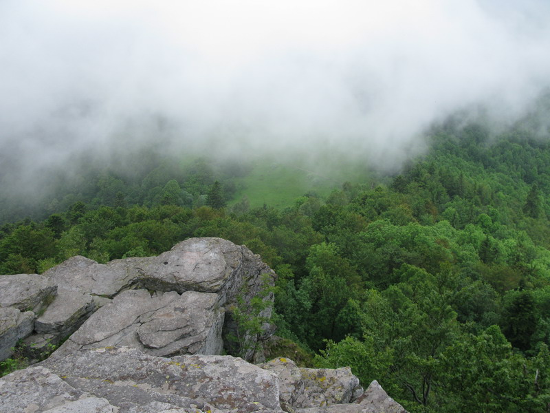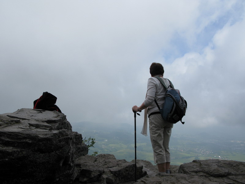 Na vrchole je okrem vysielača aj budova s rozhladňou, kde je obchodík so suvenírmi a občestvením. Aby sme sa nevracali tou istou cestou, tak sme na návrat použili žltú značku vedúcu popri Tatárskom jarku. Predierajúc sa porastom po chodníku, ktorým už dlhšie nikto nešiel sme obdivovali dnes už nefunkčné dielko. Muselo to tu byť v stredoveku celkom zaujímavé.