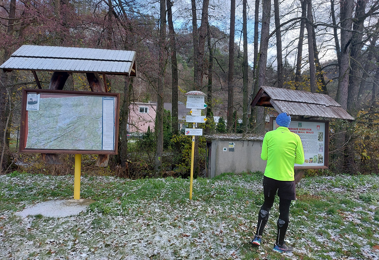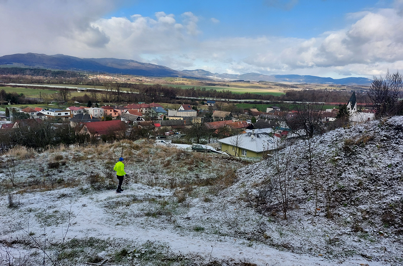 Rozmýšľal som, ako toto nazvať. Možno by lepšie pasovala „Ladomerská potkýnačka“. Majo skončil na zemi tuším dvakrát a strarý, dýchavičný pes s huspeninovými nohami sa potkýnal celý čas. Hlavne ale išlo o tú dobrú, aj keď ešte nie dlhú tradíciu - príjemne si skupinovo pobehať takto koncom jesene (teraz koncom novembra). Viac turistika ako beh, viac zima ako teplo. Akurát, že z „partie huspeninového psa“ sme ostali teraz len dvaja - aj preto, lebo toto bolo veľmi rýchle rozhodovanie zo soboty na nedeľu, keď nápor Arktídy mal v nedeľu poľaviť, najmä v južnejších pohoriach. Tak sa zrodil nápad ujsť do závetria a okoštovať svahy a doliny Štiavnických vrchov, tesne priliehajúce k doline Hrona, kúsok od Žiaru nad Hronom.