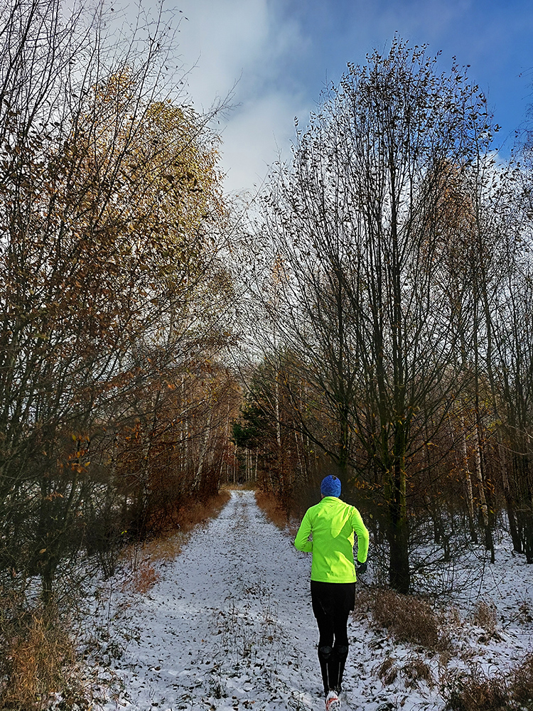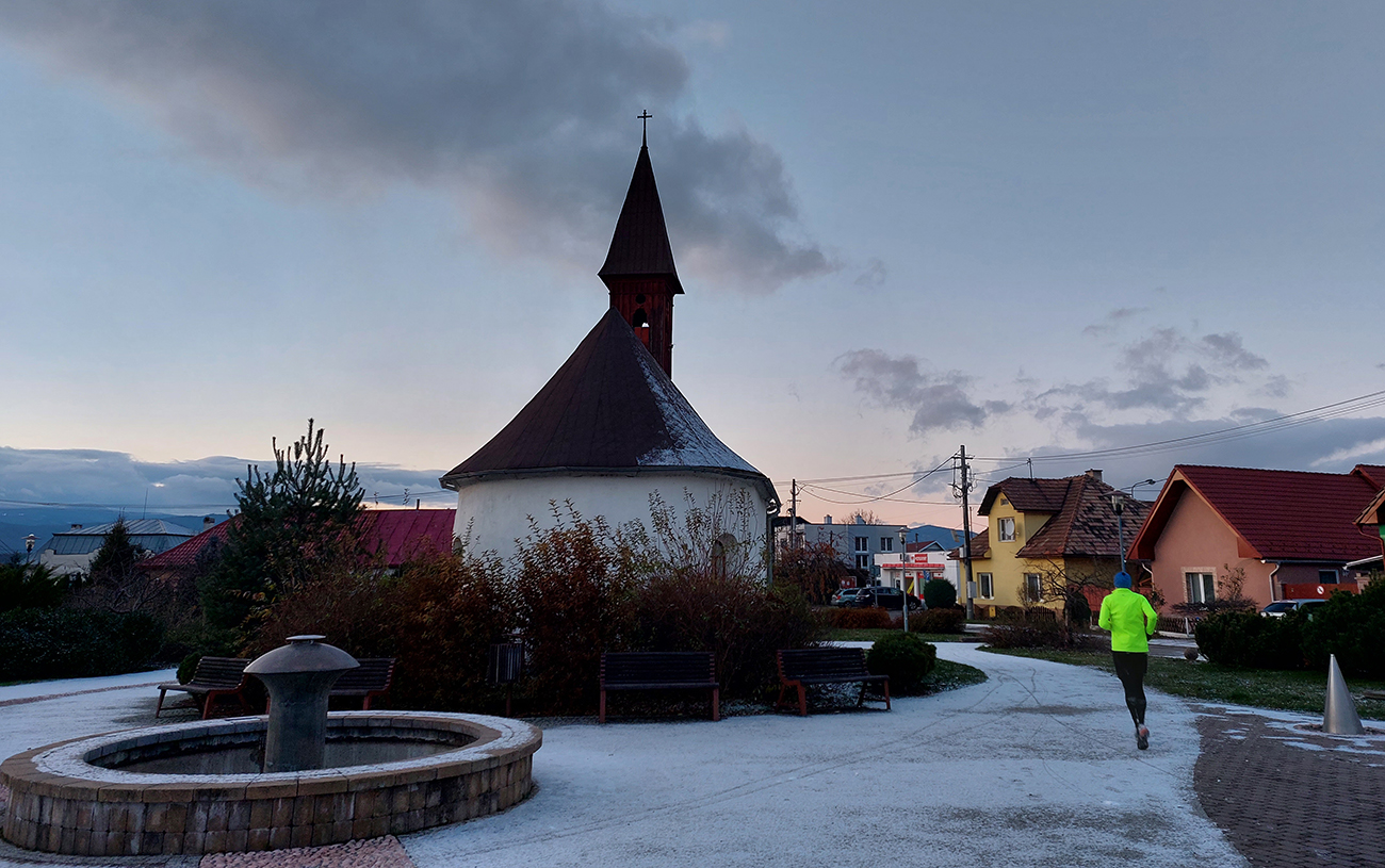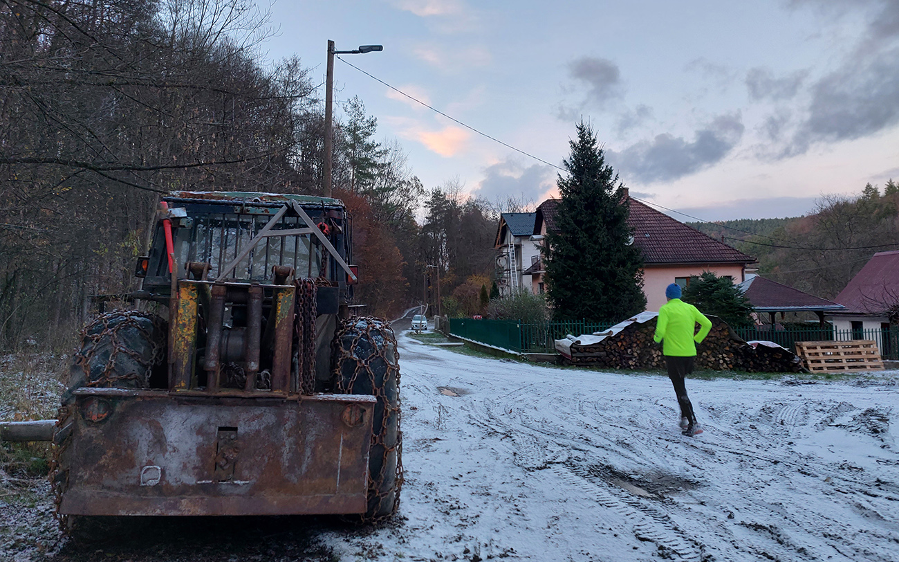 Celkovo to bolo zaujímavé a celkom sme to dobre vystihli – blato na zvážniciach tak akurát primrznuté a väčšinou aj prisypané, buď lístím alebo snehom. Toho snehu tak akurát, aby sme sa neborili po členky, ale aby sa dobre behalo po mäkkom. Veľa chotárnych ciest, no len zopár rozbitých a rozjazdených zvážnic (hlavne na začiatku a na konci), kde by to bol pri teplotách nad nulou asi taký malý mordor. Poprepájali sme veľa pekných miest, pre Štiavnické vrchy typických, medzi nimi sme preklusávali po (stále ešte) jesenne farebných lesoch a lúkach. Aj modrej oblohy bolo dosť, a našťastie ani čelovky sme nepotrebovali, domagorili sme sa k autu tak akurát, s príchodom príšeria. A inak aj dosť tesne pred príchodom masívnej snehovej nádielky, ktorá dúfam definitívne otvorila skialpovú sezónu u nás. Normálne môžeme byť na seba hrdí, ako sme to parádne vymysleli a vychytali :-)