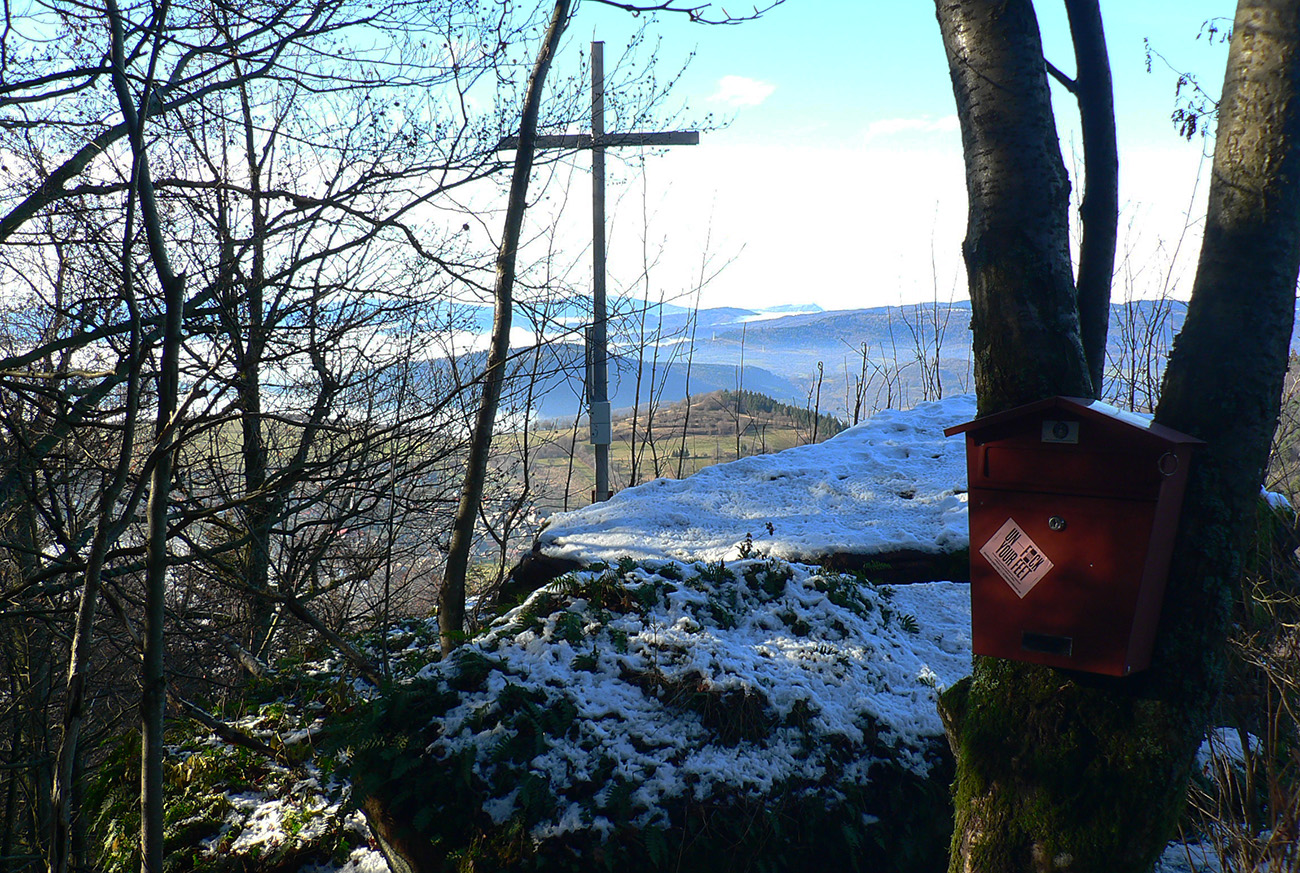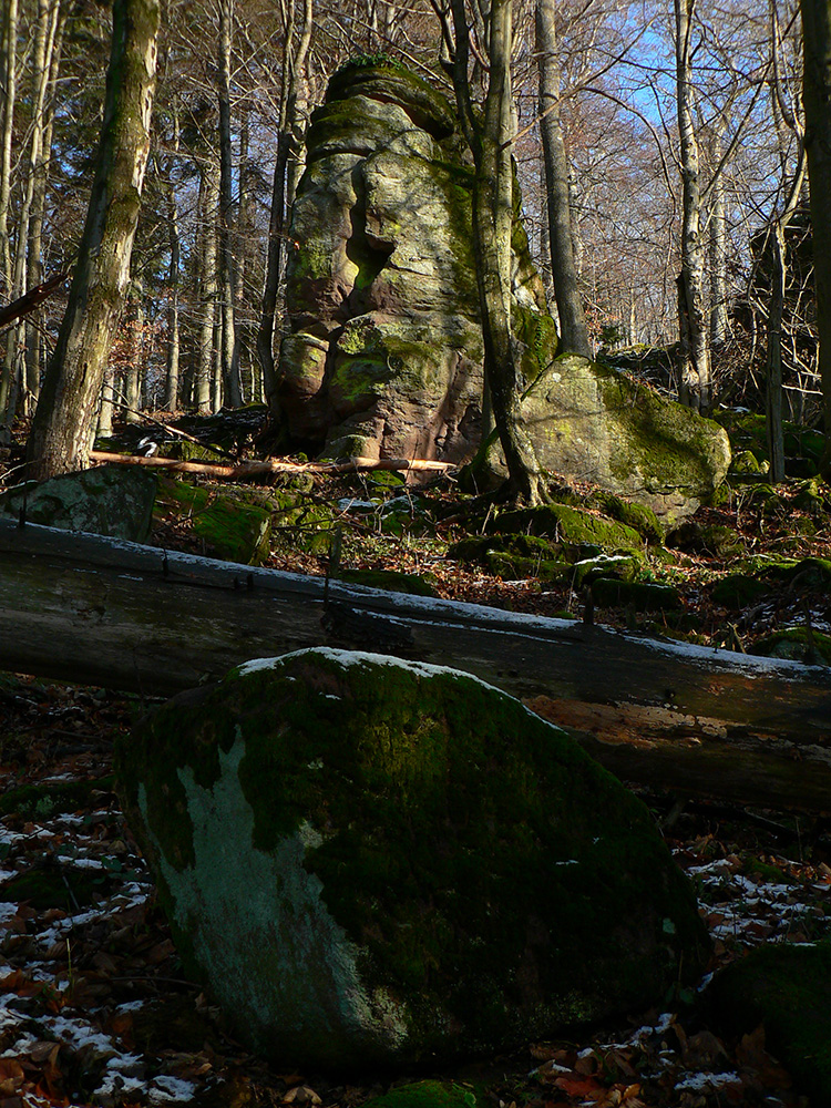 Potom už nazad dole na odbočku z doliny hore - ku krížu je to odtiaľ asi 50 minút, tiež dobre značených. S ďalšou odbočkou pri mravenisku :-) Záver strmší, ale cesta lesom ako z rozprávky, pomedzi veľké, machom obrastené balvany. A nad tým všetkým skalné mesto podobné tomu Prielomu dole v doline. Len nevkusné plechové stĺpiky krížovej cesty a hore ten kríž a ostatné „kostolné doplnky“. Nemôžem si pomôcť, ale toto sa dalo aj inde postaviť a radšej dôstojnejšie, nebolo treba práve takto przniť tú skalnú nádheru. Ale sa niet čo čudovať, keď je to tu všetko bez ochrany. Ktovie prečo? Na toto bude mať samozrejme veľa ľudí opačný názor, to je mi jasné, ale som si neodpustil :-)